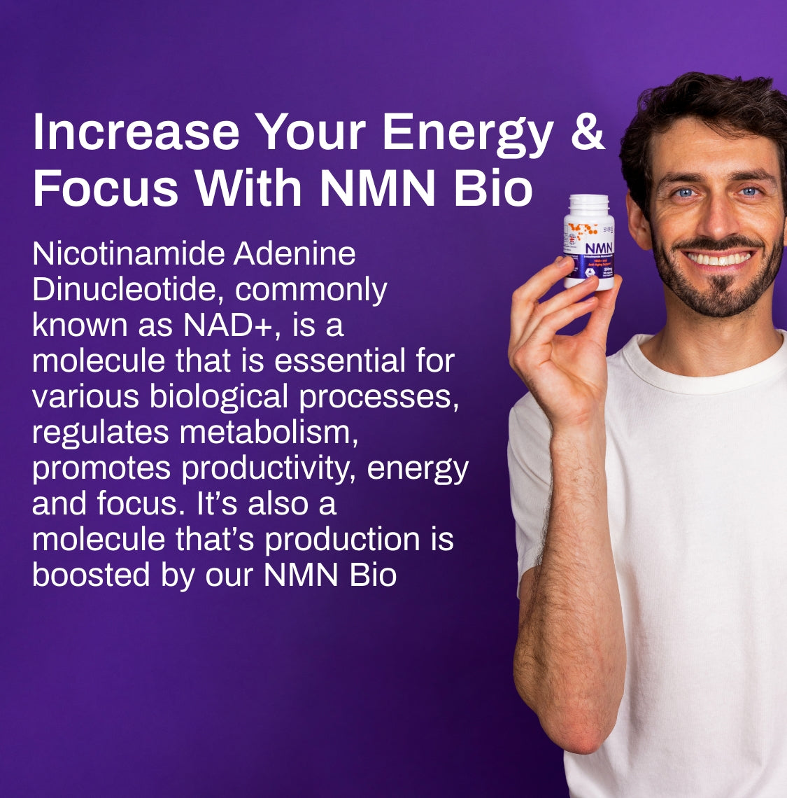Our supplements boost the levels of NAD+ in your body, which means that the natural decrease in your endurance, energy and strength when you age is pushed back and reversed. This can result in increased focus, productivity and endurance almost instantly.